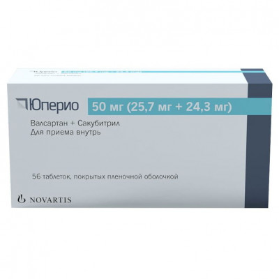 Время приема препарата Юперио не зависит от времени приема пищи. Сердечная недостаточность: Целевая (максимальная суточная) доза препарата Юперио составляет 200 мг (102,8 мг + 97,2 мг) 2 раза в сутки. Рекомендуемая начальная доза препарата Юперио составляет 100 мг (51,4 мг + 48,6 мг) 2 раза в сутки. В зависимости от переносимости дозу препарата Юперио следует увеличивать в 2 раза каждые 2-4 недели вплоть до достижения целевой (максимальной суточной) дозы 200 мг (102,8 мг + 97,2 мг) 2 раза в сутки. У пациентов, не получавших ранее терапию иАПФ или АРА II, или получавших эти препараты в низких дозах, начинать терапию препаратом Юперио следует в дозе 50 мг (25,7 мг + 24,3 мг) 2 раза в сутки с медленным повышением дозы (удваивание суточной дозы 1 раз в 3-4 недели). Применение препарата Юперио возможно не ранее, чем через 36 часов после отмены иАПФ, так как в случае одновременного применения возможно развитие ангионевротического отека. Так как в состав препарата Юперио входит АРА II валсартан, его не следует применять одновременно с другим препаратом, в состав которого входит АРА II. При развитии признаков нарушения переносимости препарата Юперио (клинически выраженное снижение АД, гиперкалиемия, нарушение функции почек), следует рассмотреть вопрос о временном снижении дозы или коррекции дозы одновременно применяемых лекарственных препаратов. Эссенциальная артериальная гипертензия: Рекомендуемая начальная доза препарата Юперио составляет 200 мг один раз в сутки. У пациентов с недостаточным контролем артериального давления при приеме дозы 200 мг один раз в сутки ее можно повысить до 400 мг один раз в сутки. У пациентов с гипертонической болезнью и сердечной недостаточностью рекомендуется дозировка как при сердечной недостаточности. Препарат Юперио можно использовать в режиме монотерапии или в комбинации с другими гипотензивными средствами, кроме ингибиторов АПФ и БРА. Пациенты с нарушением функции почек: У пациентов с нарушениями функции почек легкой (рСКФ 60-90 мл/мин/1,73 м2) или умеренной степени тяжести (рСКФ 30-60 мл/мин/1,73 м2) коррекции дозы препарата не требуется (см. раздел «Фармакологические свойства»). У пациентов с сердечной недостаточностью и тяжелым нарушением функции почек (рСКФ