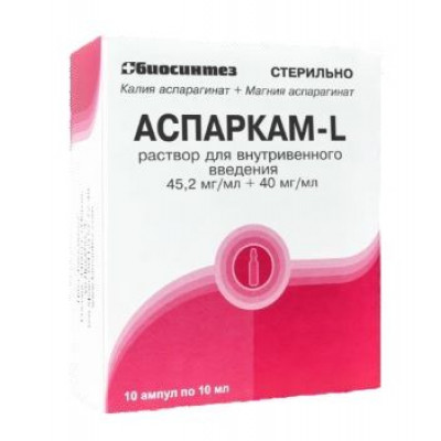 АСПАРКАМ-L 45,2МГ/МЛ.+40МГ/МЛ. 10МЛ. №10 Р-Р Д/В/В АМП. /БИОСИНТЕЗ/