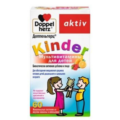 Доппельгерц Kinder Мультивитамины для детей – это мультивитаминный комплекс для полноценного физического и интеллектуального развития ребенка. Он подходит для обогащения ежедневного рациона питания детей дошкольного и школьного возраста. Особенностью комплекса является то, что он не содержит искусственных красителей и консервантов и имеет новый вкус «Малина и апельсин».