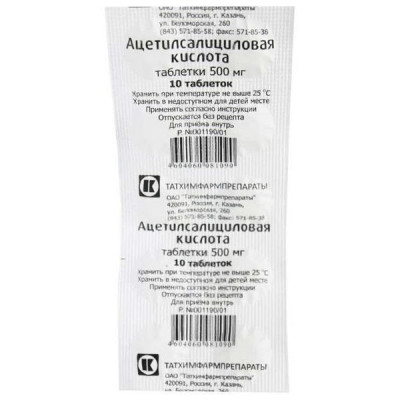 АЦЕТИЛСАЛИЦИЛОВАЯ К-ТА 500МГ. №10 ТАБ. /ТАТХИМФАРМ/