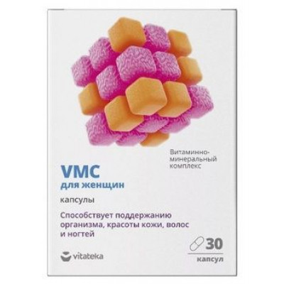 Витаминно-минеральный комплекс VMC для женщин от vitateka® богат витаминами – А, группы В, С, Е, минералами – кобальтом, селеном, медью, железом, марганцем, кальцием, цинком, магнием, селеном и нутриентами – бета-каротином, гиалуроновой, парааминобензойной и липоевой кислотами, катехинами, инозитолом и рутином. Способствует поддержанию женского организма, красоты кожи, волос и ногтей.
