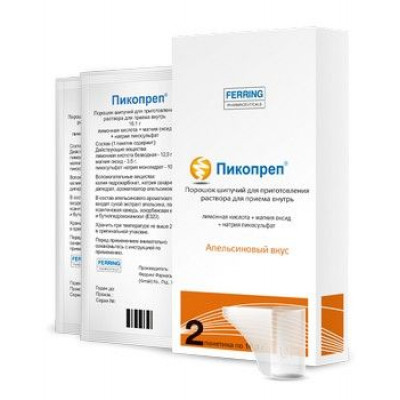 Рекомендуется проводить процедуру очищения кишечника перед соответствующими оперативными манипуляциями на кишечнике только в случае крайней необходимости в связи с отсутствием доказательства клинического преимущества данного метода. Необходимо оценить соотношение «польза/риск» подобной терапии по отношению к проводимой хирургической манипуляции. Недостаточное потребление воды и электролитов могут вызвать клинически значимый недостаток этих компонентов, особенно у ослабленных пациентов (пациенты с низкой массой тела, дети, лица пожилого возраста, пациенты с риском развития гипокалиемии или гипонатриемии). У пациентов с признаками гипокалиемии или гипонатриемии необходимо принять срочные меры по восстановлению водно-электролитного баланса. Восполнять объем жидкости необходимо путем употребления воды и прочих прозрачных жидкостей, не рекомендуется принимать только воду. Употребление только воды с целью восполнения объема жидкостей может привести к дисбалансу электролитов, который в тяжелых случаях может приводить к таким осложнениям, как судороги и кома. В редких случаях у ослабленных пациентов применение препарата Пикопреп® может вызывать серьезные или опасные для жизни проблемы с электролитами или нарушение функции почек. Препарат Пикопреп® необходимо назначать с осторожностью пациентам с недавно перенесенными операциями на желудочно-кишечном тракте, почечной недостаточностью, заболеваниями сердца или воспалительными заболеваниями кишечника. Рекомендуется с осторожностью применять препарат у пациентов, принимающих лекарственные средства, влияющие на водно-электролитный баланс (диуретики, глюкокортикостероиды, препараты лития). Препарат Пикопреп® может уменьшать всасывание регулярно принимаемых лекарственных препаратов для приема внутрь, следует применять с осторожностью у пациентов с эпилепсией, так как имеются случаи возникновения эпилептических припадков у пациентов с ранее компенсированной противоэпилептическими средствами эпилепсией. Период подготовки к очищению кишечника не должен превышать 24 ч, более долгий период увеличивает риск нарушения водно-электролитного баланса. В случае проведения процедуры/манипуляции ранним утром может потребоваться прием второй дозы препарата в течение ночи, что может привести к нарушению сна. Препарат содержит гидрокарбонат калия, что должно учитываться у пациентов с низко-калийной диетой. 1 саше препарата Пикопреп® содержит 5 ммоль (195 мг) калия, что необходимо учитывать при назначении препарата пациентам со сниженной функцией почек. В состав ароматизатора апельсинового препарата Пикопреп® входит лактоза. Поэтому пациентам с непереносимостью лактозы, дефицитом лактазы или глюкозо-галактозной мальабсорбцией прием данного препарата не рекомендуется. Препарат не предназначен для применения в качестве регулярного слабительного. Влияние на способность управлять транспортными средствами, механизмами: В связи с возможностью развития побочных эффектов со стороны нервной системы следует соблюдать осторожность при управлении транспортными средствами и занятии другими потенциально опасными видами деятельности, требующими повышенной концентрации внимания и быстроты психомоторных реакций.