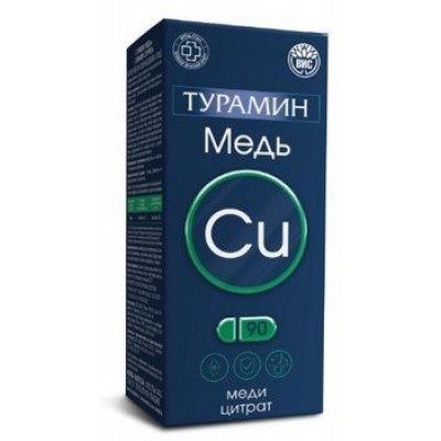 Турамин Медь – это источник меди - в легкодоступной хелатной форме меди цитрата. При приеме 1 капсулы Турамин Медь в день человек получает 1,5 мг меди - чаще всего этого достаточно для профилактики дефицита.